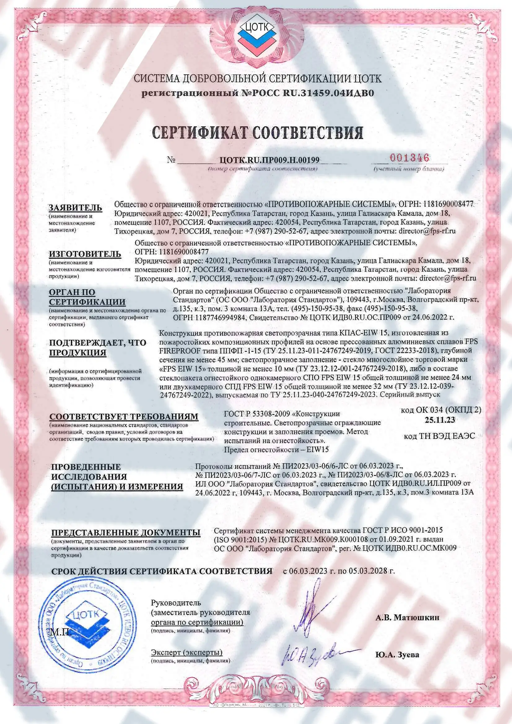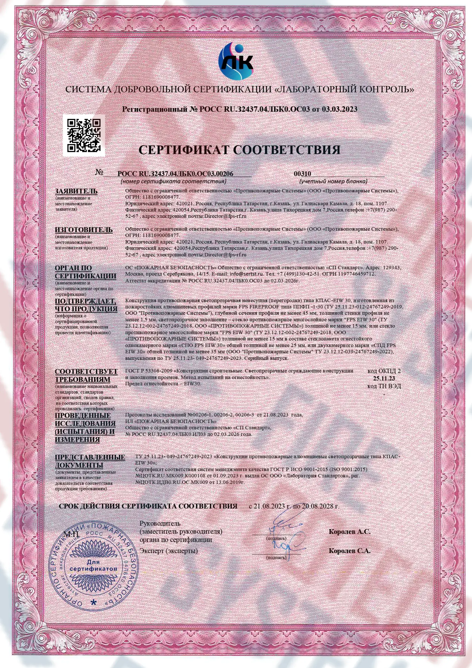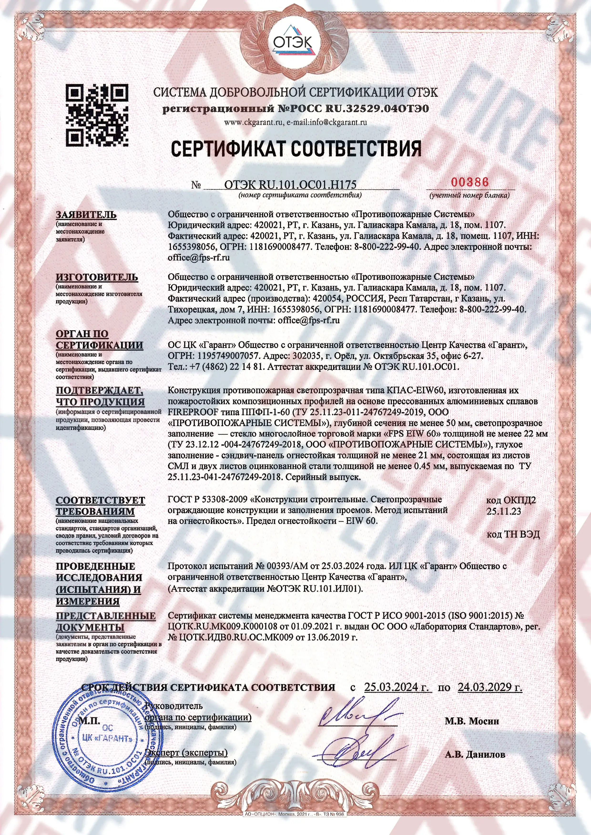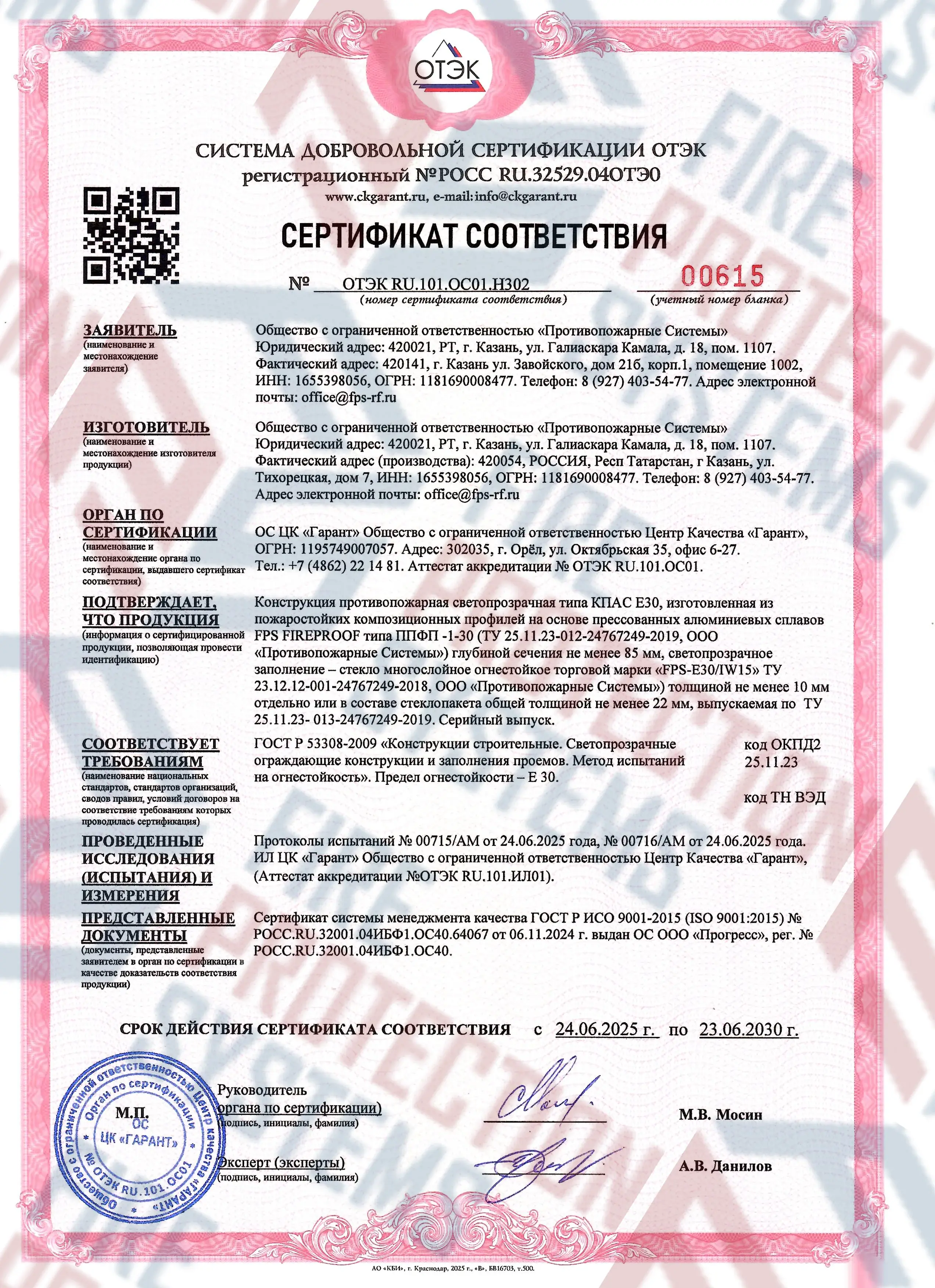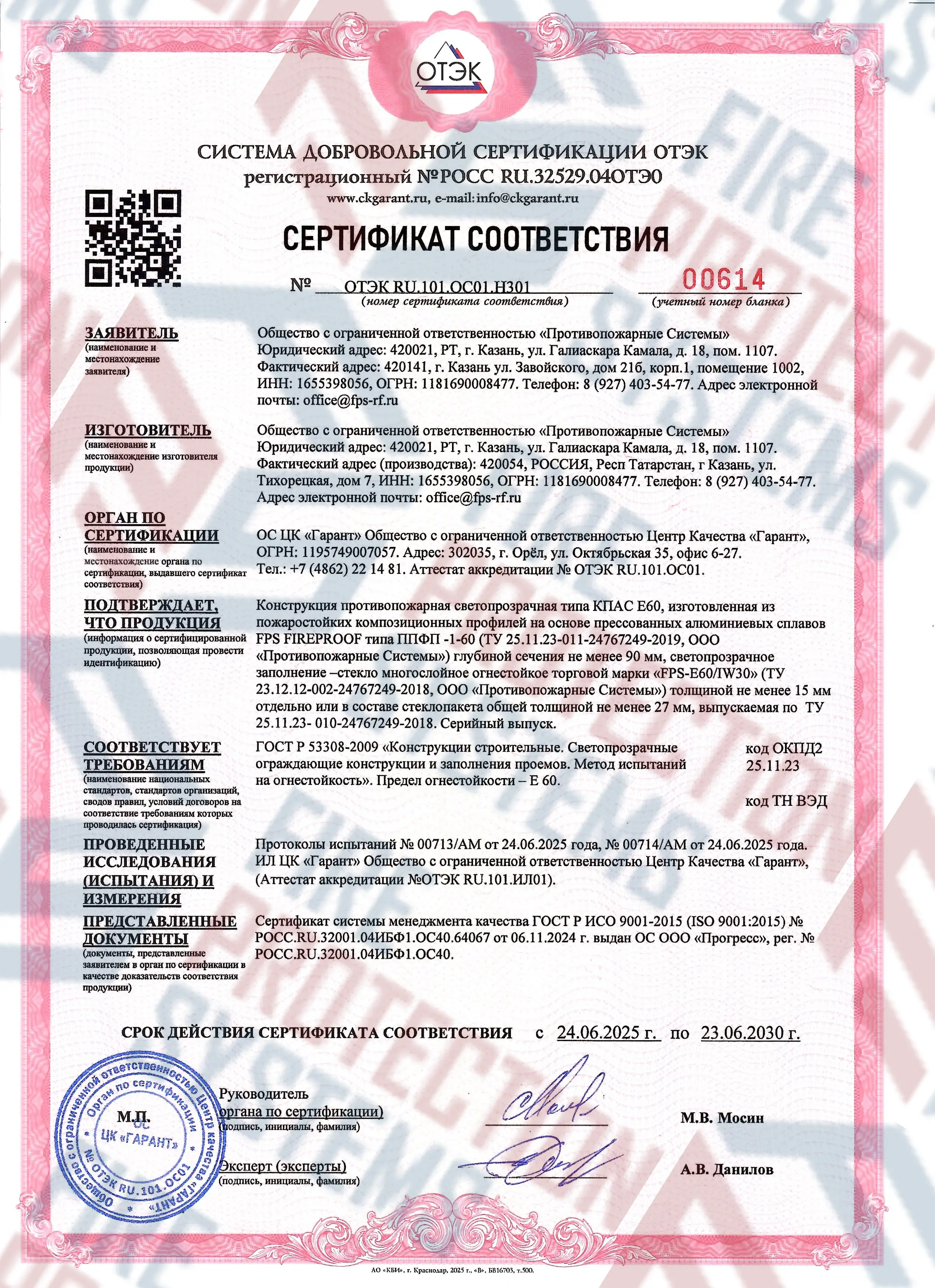 Повышенная огнестойкость (EIW 60) — эффективно сдерживают пламя, дым и тепловое излучение в течение 60 минут.